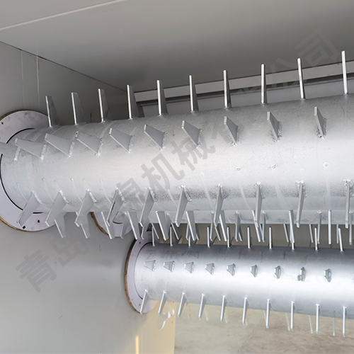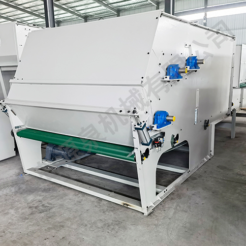 把各種捆包纖維、原料經(jīng)電子稱(chēng)重后,喂入平簾輸送至主體混倉(cāng)內(nèi),再由三道開(kāi)松輥高速開(kāi)松混合后,經(jīng)輸棉風(fēng)機(jī)以適量的風(fēng)量輸送纖維原料供后道工作使用。經(jīng)本機(jī)開(kāi)松混合后的纖維、原料效果好,混合均勻,以備梳理使用。