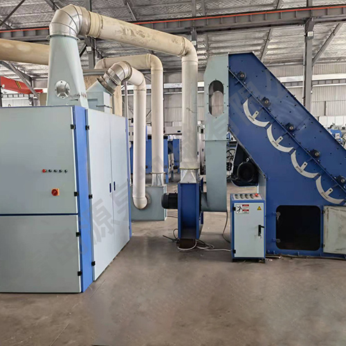 六滾筒開毛機主要開松原絨:山羊絨、綿羊毛、牦牛絨、駝絨等動物纖維。本機開松輥采用斜式排列,充分利用離心力,是去粗、去雜、去皮的最佳效果。結(jié)合風(fēng)機吸風(fēng)均勻落入和毛倉,是梳理前配備的必要產(chǎn)品。