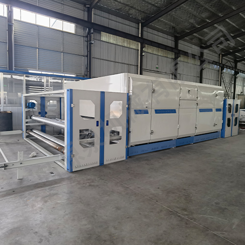 通過本機(jī)作用可生產(chǎn)無膠棉、仿絲棉等,產(chǎn)品廣泛應(yīng)用于服裝、繡品、床上用品、家私、旅游產(chǎn)品等。該機(jī)器可采用1臺燃燒器加熱或電加熱,循環(huán)風(fēng)機(jī)將熱風(fēng)經(jīng)風(fēng)道穿透對流,上吹下吸,從而達(dá)到最大節(jié)能效果,而且三層網(wǎng)帶單獨傳動,各主傳動采用變頻控制。(可根據(jù)客戶需求定制)